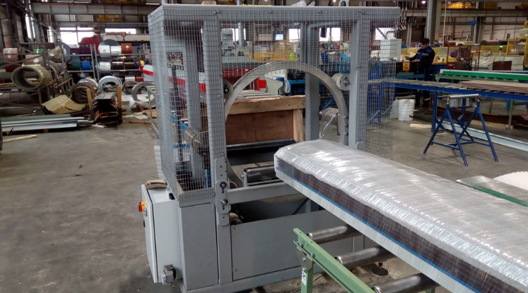 These lines are intended for packing packs of finished products in stretch film (siding, additional elements, corrugated board, metal tiles, etc.). They work in sync with the profile lines. One packaging line can handle several mills.