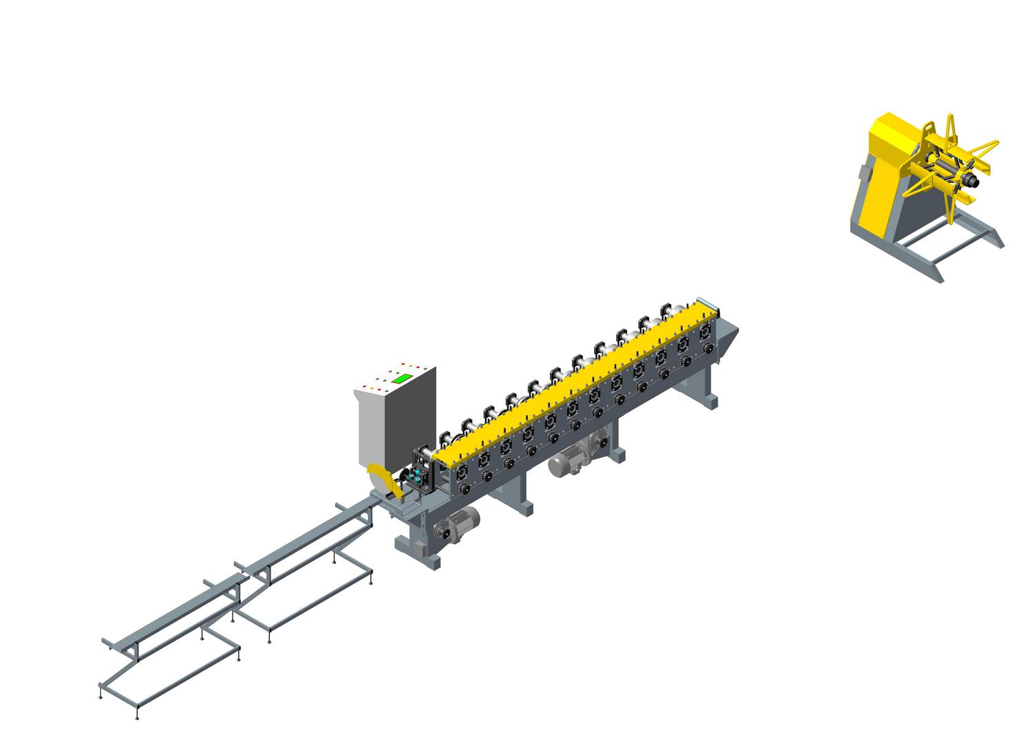 The lines produce reinforcing profiles of PVC systems, open and closed. The profiles are made of thin-sheet galvanized steel with a thickness of 0.8 to 2.0 mm.