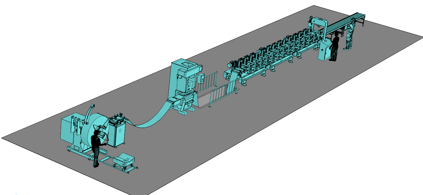 The equipment for the production of steel silos is designed to work with coiled steel with a thickness of 2 to 4 mm and a width of 500 mm. The technological process consists of the procedure of forming a spiral from a steel strip and folding the seams, as a result of which it is possible to obtain silos with a diameter of 5 to 35 meters.