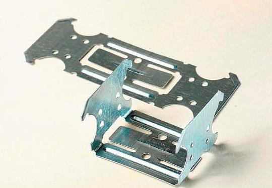The line of products obtained by stamping is very large, ranging from small additional elements (KNAUF hangers and crabs, fasteners for lining, perforation of plaster beacons and putty corners, and many others), ending with large parts with a polymer coating (metal tiles, elements of round and rectangular gutters, stamps for perforating profiles LGMC and others).